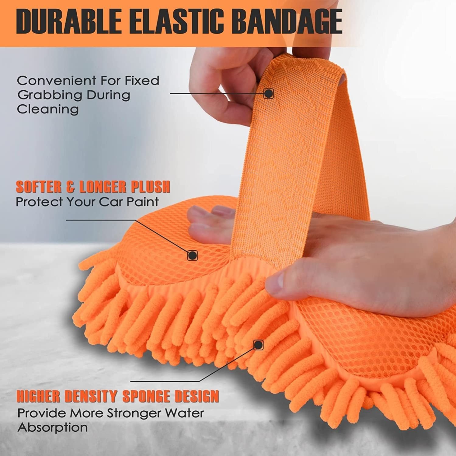 BUYMOOR® 2 Pack Car Wash Sponge | Premium Microfiber Chenille Car Cleaning Mitts | Ultra Absorbent, Waterproof, Wet & Dry Use | Regular Size Car Wash Tools