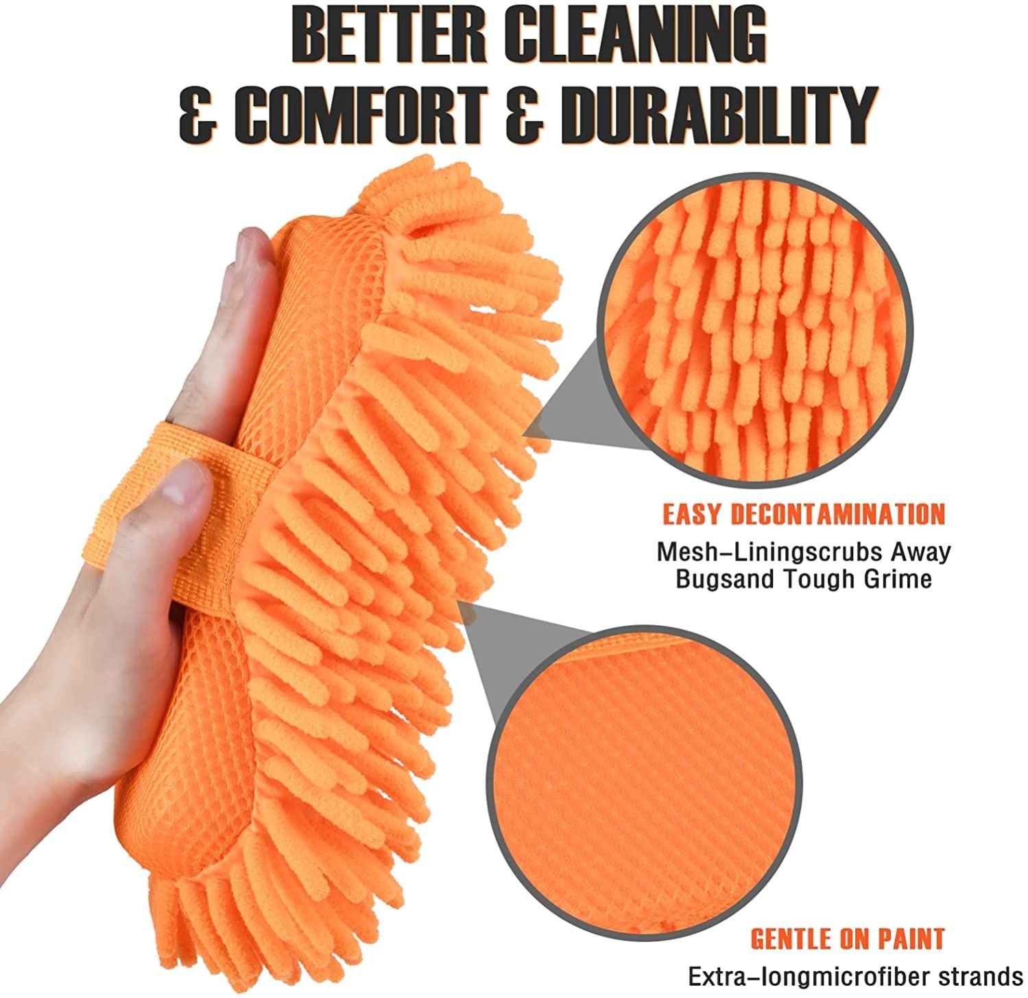 The BUYMOOR® 2 Pack Car Wash Sponge is made from premium microfiber chenille for superior cleaning. Ultra-absorbent, waterproof, and suitable for both wet & dry use, these sponges are perfect for cars, bikes, glass, and household cleaning.