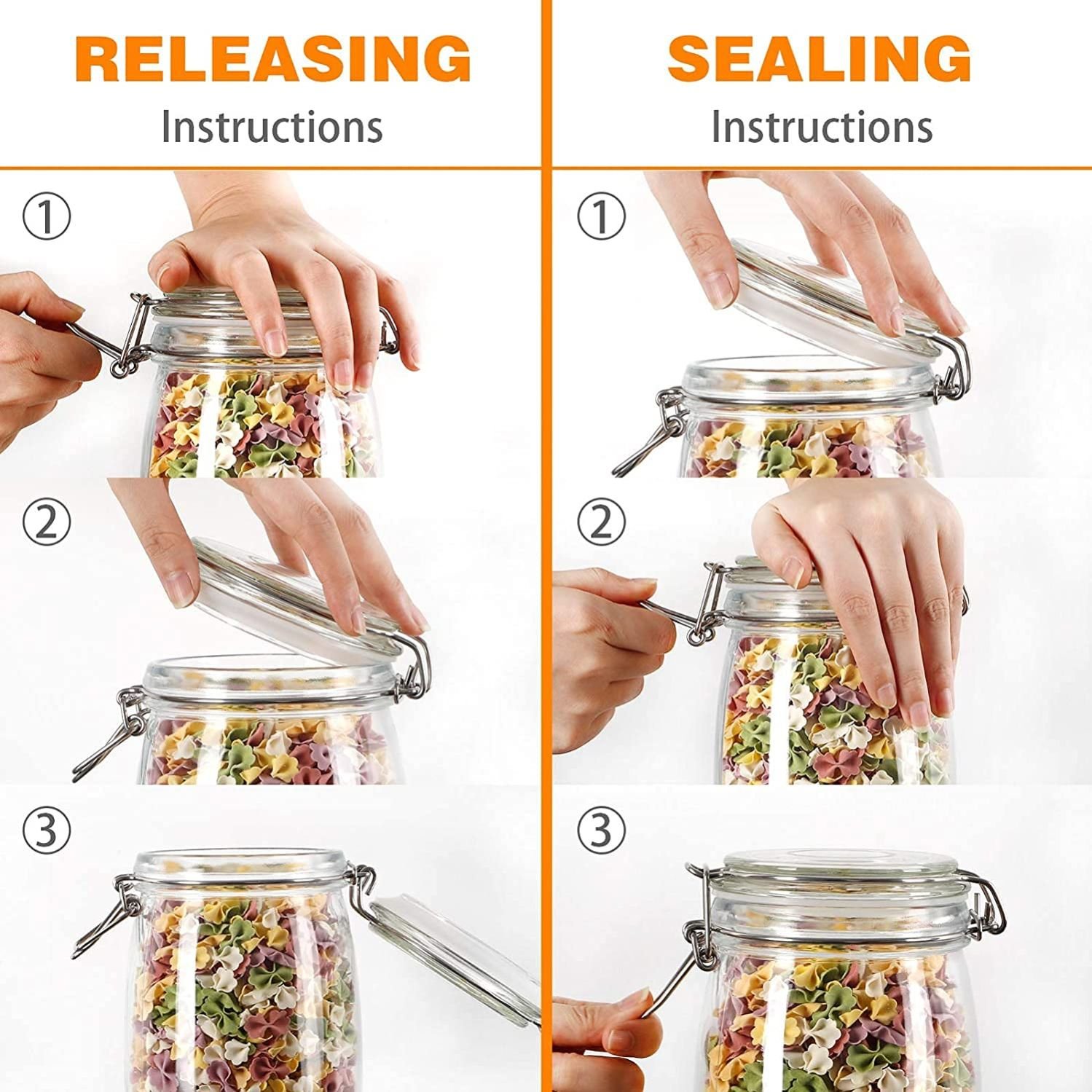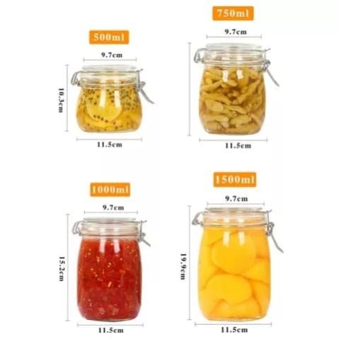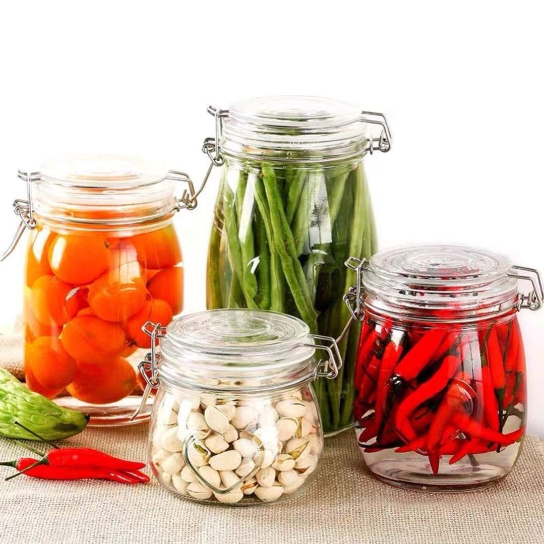BUYMOOR® 1000 ml Airtight Glass Jar with silicone clamp lid and wire clip fastening is perfect for storing cereals, sugar, beans, spices, and dry food. The airtight seal locks in freshness, while the clear glass body allows easy content visibility. Durable, reusable, and eco-friendly—ideal for kitchen and pantry organization.