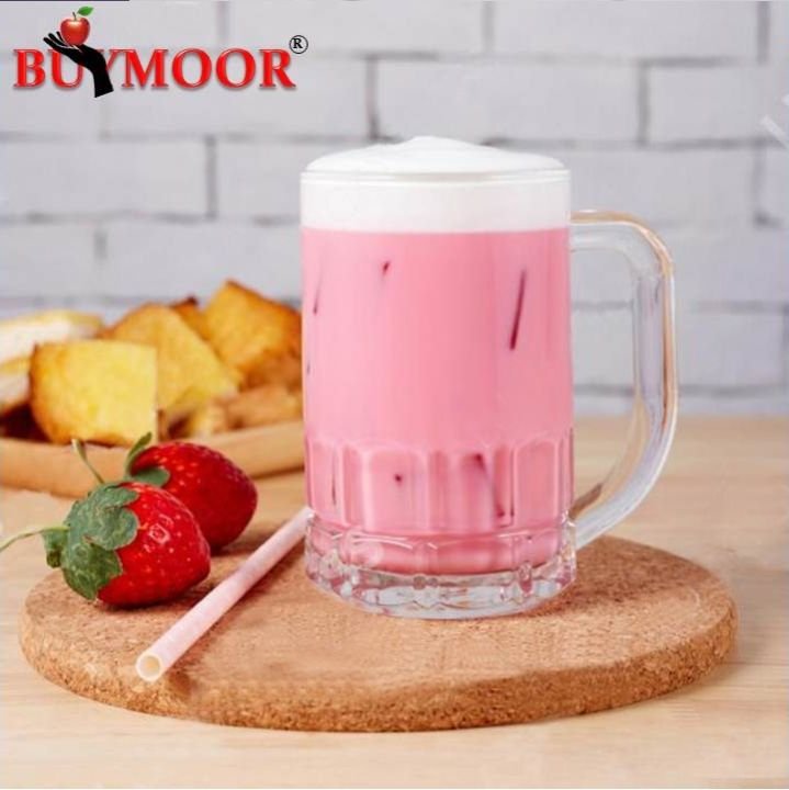 Enjoy your favorite beer in style with BUYMOOR Beer Glass Mugs. Made from premium strong glass, these crystal-clear mugs with sturdy handles ensure a comfortable grip and long-lasting durability. Perfect for beer, cocktails, mocktails, juices, or soft drinks – ideal for home, parties, and restaurants.