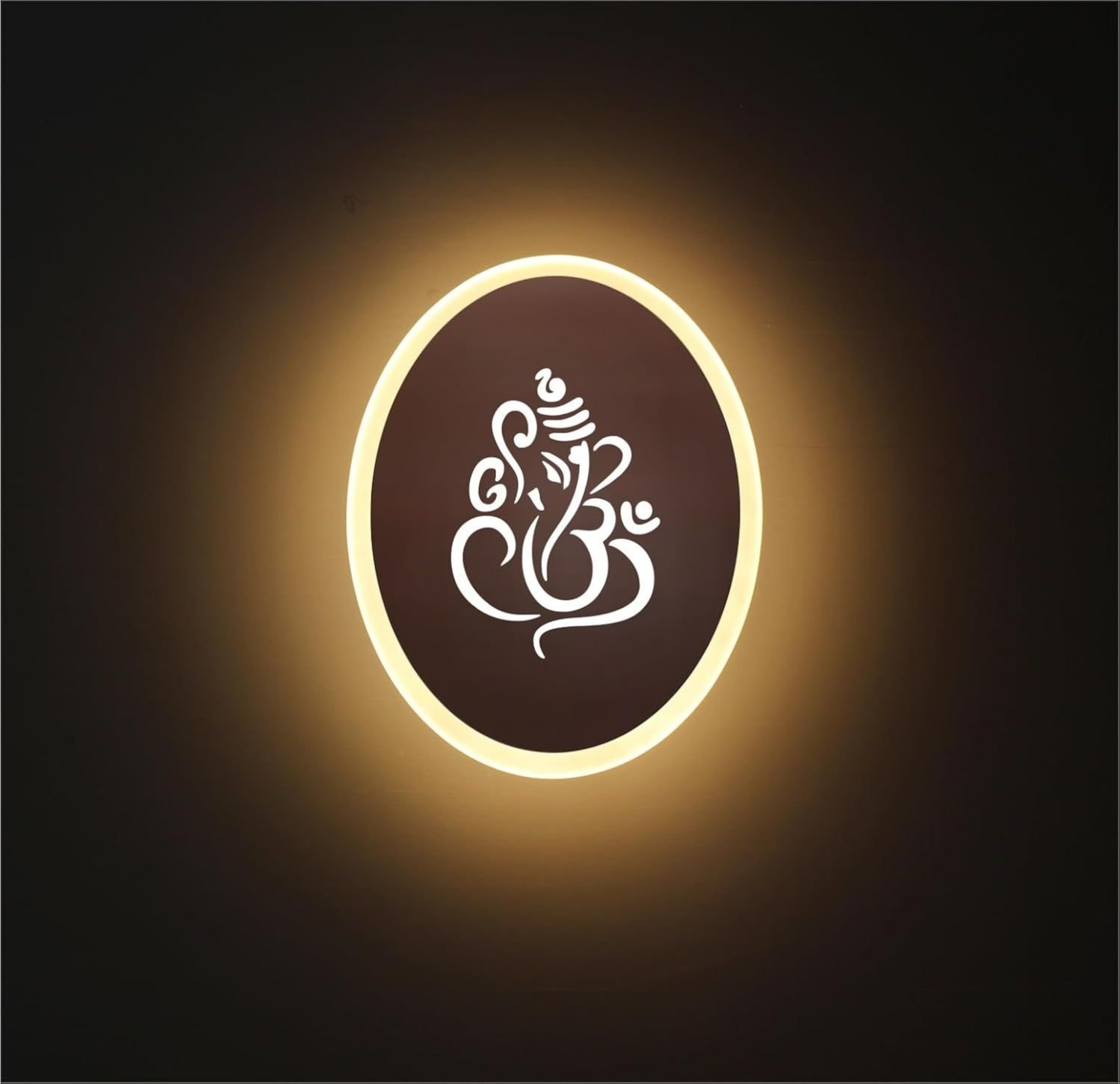 BUYMOOR® Ganpati LED Wall Light | Rose Gold with Frosted Acrylic | Decorative Wall Lamp for Temple, Pooja Room, Mandir, Living Room, Bedroom & Hotels | Warm White Glow | Oval Ganesh Design – 23 cm (P1)