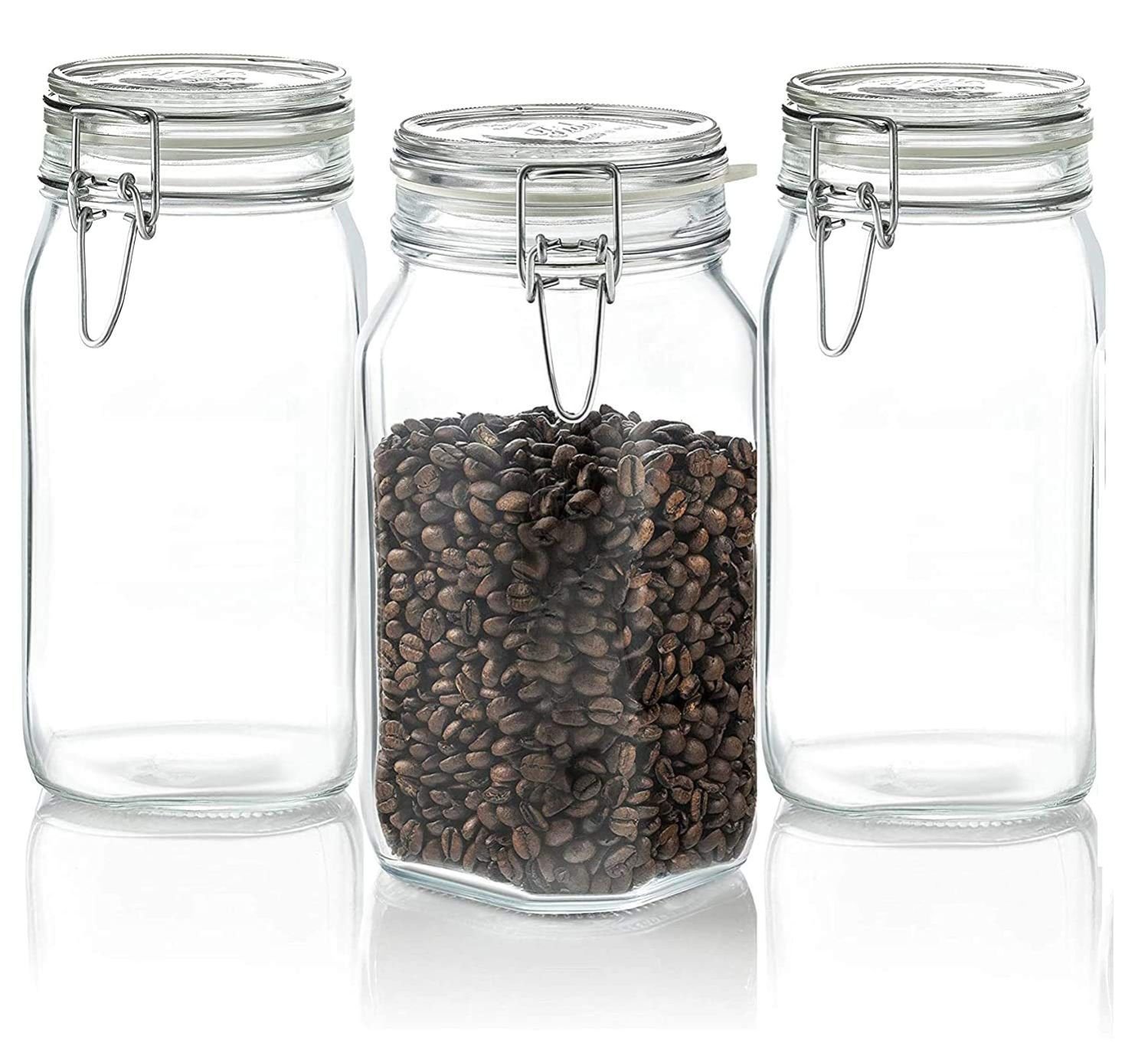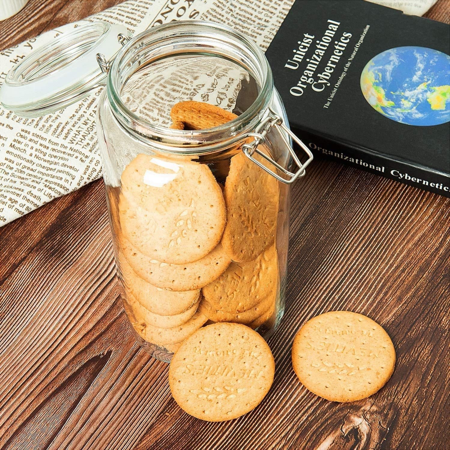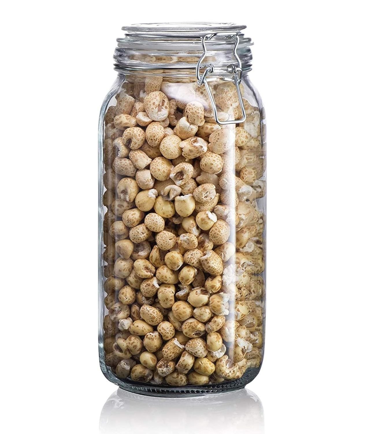 BUYMOOR® Glass Kitchen Storage Canister Jar with Airtight Hinged Lid – 2000ml Large Mason Jar | Ideal for Cereal, Pasta, Sugar, Beans & Dry Food (Set of 1)