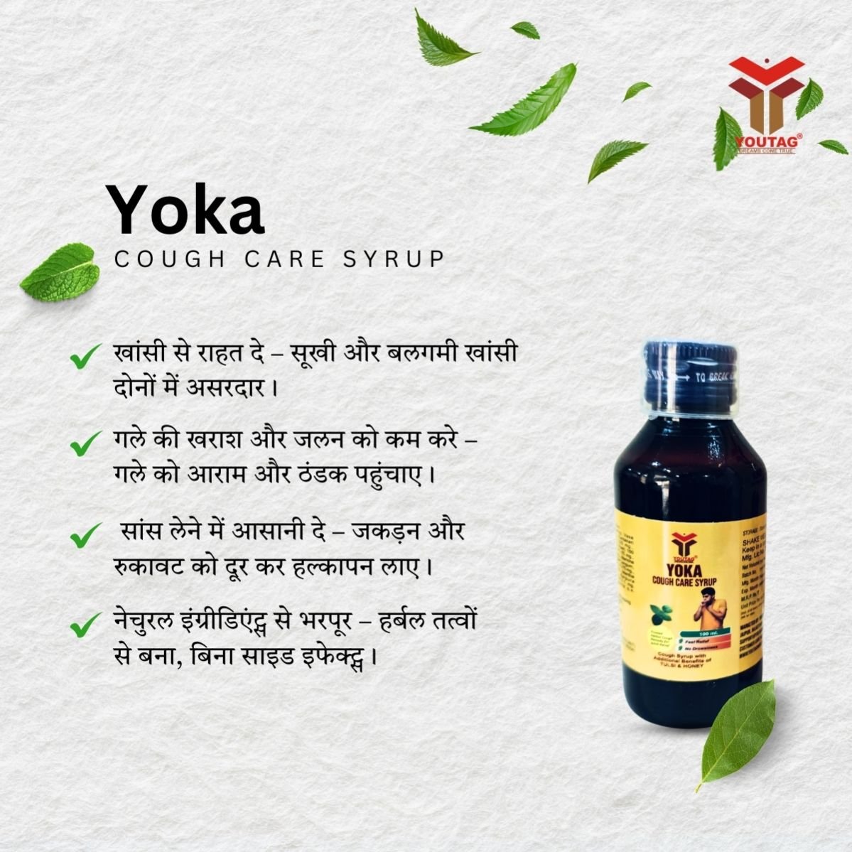 BUYMOOR® YOKA Cough Syrup offers fast, soothing relief from dry or wet cough, sore throat, and congestion. Made with a powerful blend of herbal ingredients like honey, menthol, tulsi, and mulethi, it helps calm irritation, clear mucus, and promote easy breathing—without causing drowsiness. Suitable for both adults and children.-