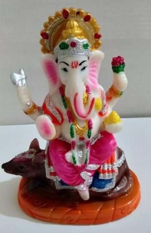 This idol is of Ganeshji. It is made of fibre marble touch. It is very beautiful and well-mannered. It will never turn black. It is smooth and beautiful. 6,7,8 inch