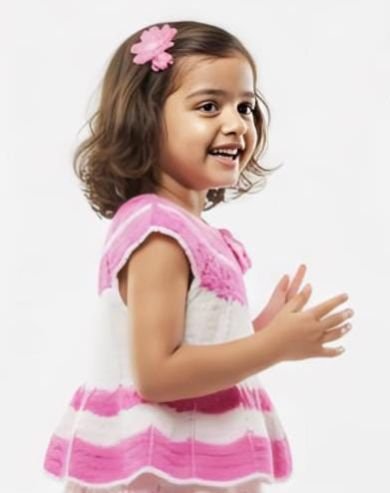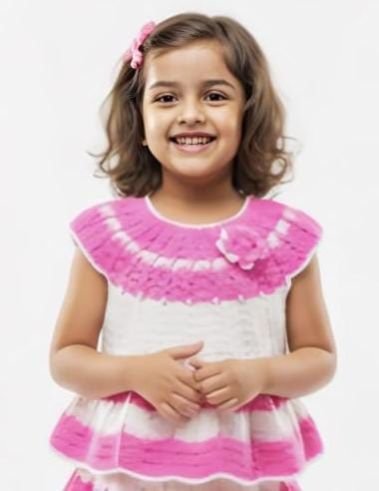 Dress up your little one in this adorable handmade crochet baby frock, designed to keep her comfortable and stylish. Made from soft woolen yarn, this frock features a pink and white striped pattern with delicate crochet detailing, adding a touch of elegance to your baby's wardrobe. Perfect for daily wear, festive occasions, photoshoots, or gifting, this dress is lightweight, breathable, and gentle on your child's skin. Since every piece is handcrafted with love, no two dresses are exactly the same-making it a truly unique outfit for your little princess.