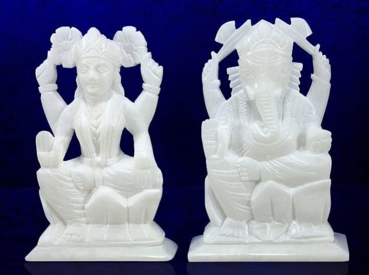 Lakshmi Ganesh idol made of marble white marble italian marble beautiful statue hand designed lakshmi idol bring it home lakshmi 5 inch tall